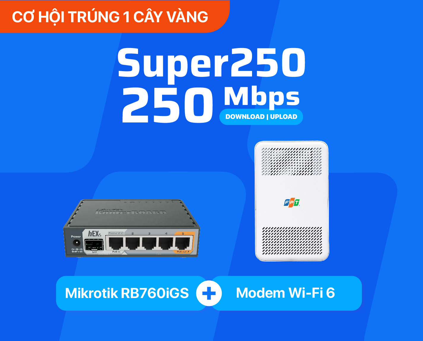 Download/Upload lên đến 250 Mbps